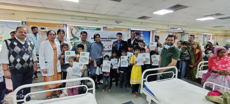 उदयपुर। बाल दिवस के अवसर पर आरएनटी मेडिकल कॉलेज के बाल चिकित्सालय में शुक्रवार को आयोजित विशेष कार्यक्रम ने भर्ती बच्चों के चेहरों पर मुस्कान बिखेर दी। अस्पताल प्रशासन और एआईपी (AIP) की ओर से संयुक्त रूप से आयोजित इस पेंटिंग प्रतियोगिता में बच्चों ने अपनी कल्पना, रंगों और मासूम भावनाओं से ऐसा समां रचा कि पूरा परिसर एक छोटी सी आर्ट गैलरी में बदल गया।