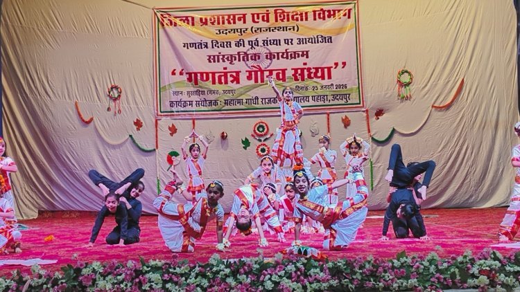77वें गणतंत्र दिवस की पूर्व संध्या पर उदयपुर के सुखाड़िया रंगमंच में जिला प्रशासन व शिक्षा विभाग द्वारा आयोजित सांस्कृतिक संध्या में विद्यार्थियों की देशभक्ति प्रस्तुतियों ने सभी को मंत्रमुग्ध किया।