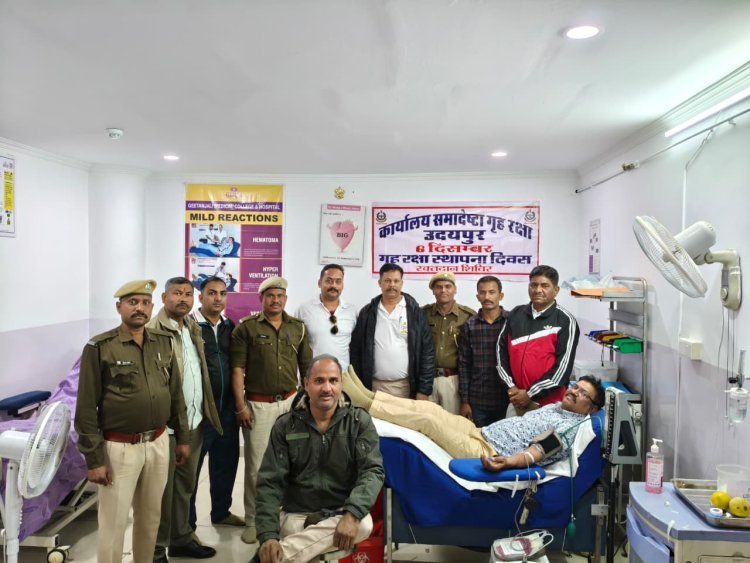 गृह रक्षा स्थापना दिवस पर उदयपुर में होमगार्ड विभाग ने रक्तदान शिविर आयोजित किया। महिला और पुरुष जवानों ने बढ़-चढ़कर भाग लिया और मानवता की मिसाल पेश की।