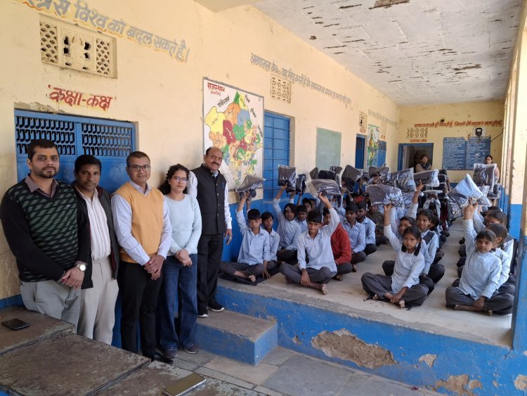 LIC agents distributed sweaters to students of a government school in Udaipur under a social responsibility initiative. Development Officer Vijay Maru highlighted the importance of such welfare activities.