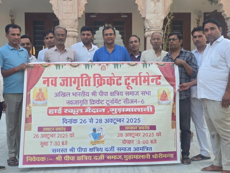 गुड़ामालानी में अखिल भारतीय श्री पीपा क्षत्रिय समाज सभा द्वारा आयोजित नव जागृति क्रिकेट टूर्नामेंट सीजन-6 का पोस्टर विमोचन किया गया। इस तीन दिवसीय क्रिकेट प्रतियोगिता में 16 टीमें भाग लेंगी। आयोजन 26 से 28 अक्टूबर तक राजकीय उच्च माध्यमिक विद्यालय खेल मैदान, गुड़ामालानी में होगा।