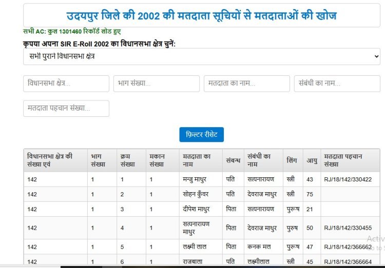 उदयपुर में ऑनलाइन परिगणना प्रपत्र और आसान | 2002 मतदाता सूची डेटाबेस जारी