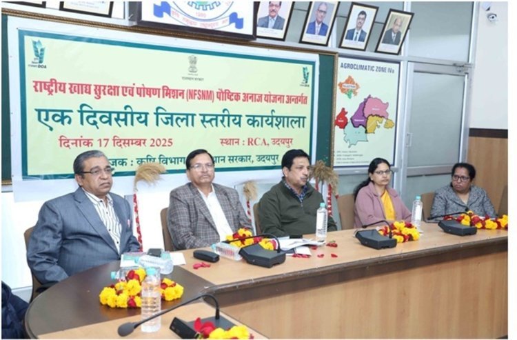 उदयपुर में राष्ट्रीय खाद्य सुरक्षा एवं पोषण मिशन के तहत पौष्टिक अनाज योजना पर जिला स्तरीय कार्यशाला आयोजित हुई। श्रीअन्न, मिलेट्स की खेती, पोषण और स्वरोजगार पर विशेषज्ञों ने मार्गदर्शन दिया।