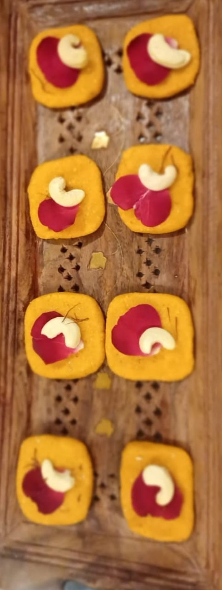त्योहारों, विशेष अवसरों या परिवार के साथ मीठा खाने का मन हो— “राज भोग” एक ऐसा शाही मिष्ठान है जो अपनी खुशबू, रंग और स्वाद से दिल जीत लेता है। हल्का नारंगी रंग, इलायची और केसर की सुगंध, और ड्राई फ्रूट्स की भरपूर रिचनेस इसे एक परफेक्ट फेस्टिव स्वीट बनाती है। सबसे खास बात—यह घर पर बेहद आसान तरीके से बन जाता है।