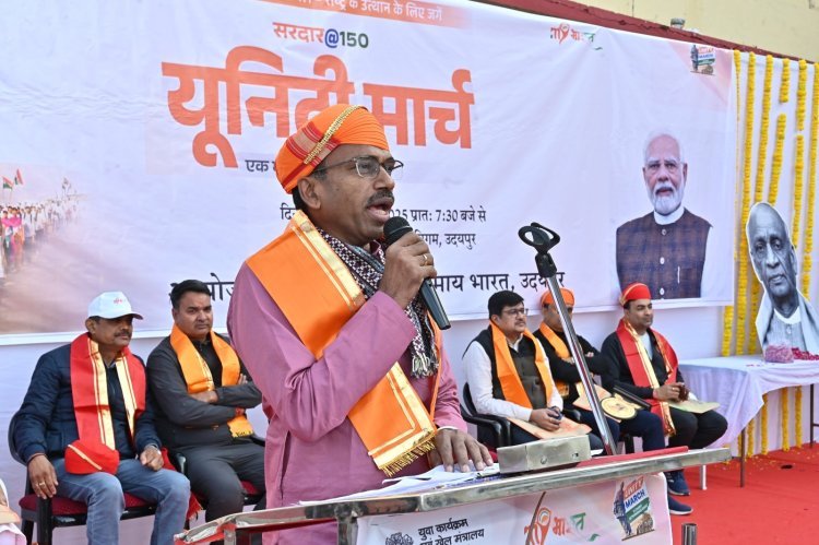 सरदार वल्लभभाई पटेल की 150वीं जयंती के अवसर पर उदयपुर में “सरदार @150 यूनिटी मार्च” का आयोजन हुआ। सांसद डॉ. मन्नालाल रावत ने युवाओं को एकता और आत्मनिर्भर भारत के निर्माण का संदेश दिया।