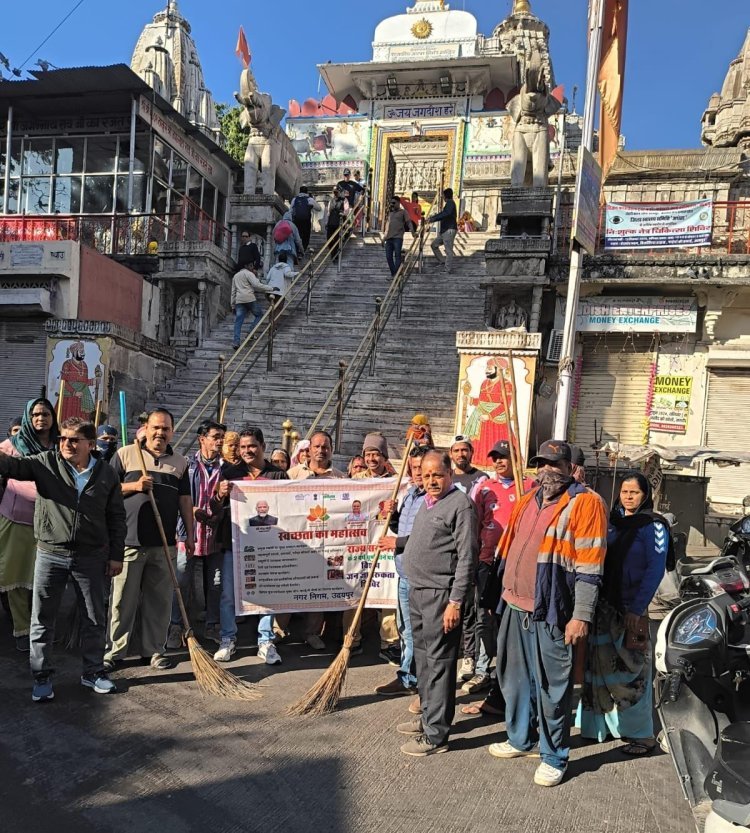 स्वच्छता अभियान का आगाज रविवार प्रातः महाकाल मंदिर परिसर से किया गया, जहां विशेष सफाई की गई। इसके साथ ही जगदीश मंदिर परिसर में भी साफ-सफाई अभियान चलाया गया। शहर के प्रमुख ऐतिहासिक द्वारों—उदयापोल गेट, सूरजपोल गेट, हाथीपोल गेट, चांदपोल गेट, अंबापोल गेट एवं ब्रह्मपोल गेट—की सफाई कर उन्हें स्वच्छ एवं आकर्षक बनाया गया।