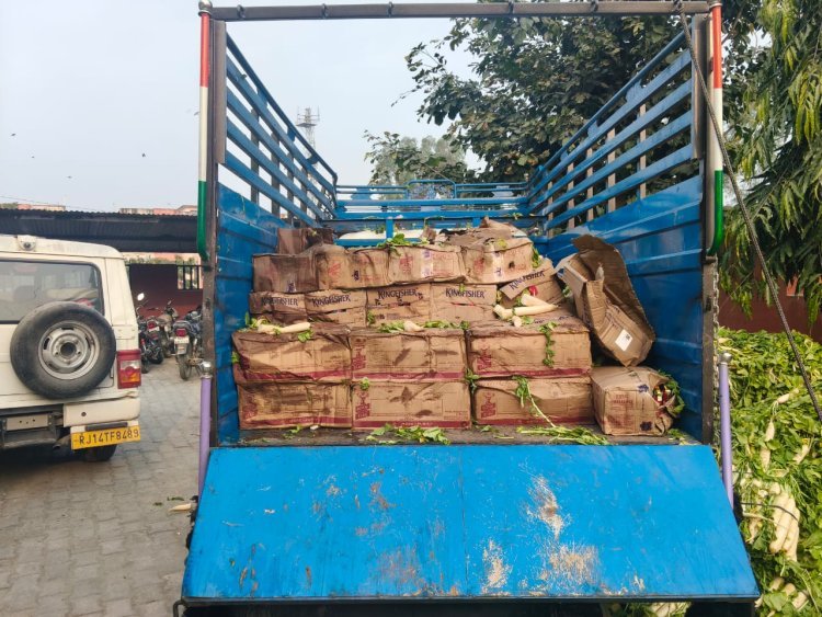 उदयपुर पुलिस की दो बड़ी कार्रवाइयाँ: सब्जी और गाजर की आड़ में चल रही अवैध अंग्रेजी शराब तस्करी का भंडाफोड़, लाखों रुपये की शराब जब्त — एक तस्कर गिरफ्तार