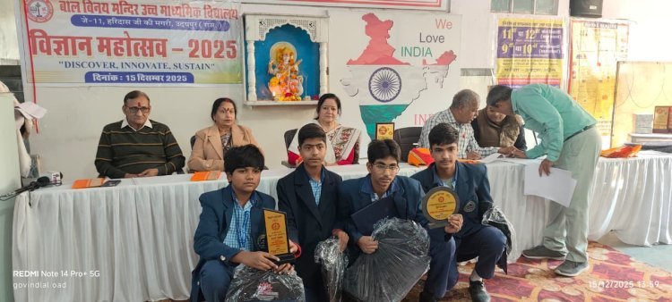 बाल विनय मंदिर उच्च माध्यमिक विद्यालय, उदयपुर में आयोजित “विज्ञान महोत्सव 2025” अन्तर्विद्यालयी विज्ञान मॉडल प्रतियोगिता विद्यार्थियों की वैज्ञानिक सोच, नवाचार और रचनात्मकता का सशक्त मंच बनकर उभरी। इस अवसर पर विद्यार्थियों द्वारा प्रस्तुत विज्ञान मॉडल्स ने शिक्षा, पर्यावरण और सामाजिक समस्याओं के समाधान की दिशा में नई संभावनाएँ प्रदर्शित कीं।