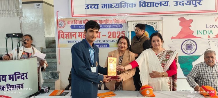 उदयपुर के बाल विनय मंदिर विद्यालय में आयोजित विज्ञान महोत्सव 2025 में 6 विद्यालयों के 61 विद्यार्थियों ने 25 नवाचार आधारित विज्ञान मॉडल प्रस्तुत किए। प्रतियोगिता में युवा वैज्ञानिकों की रचनात्मक सोच देखने को मिली।