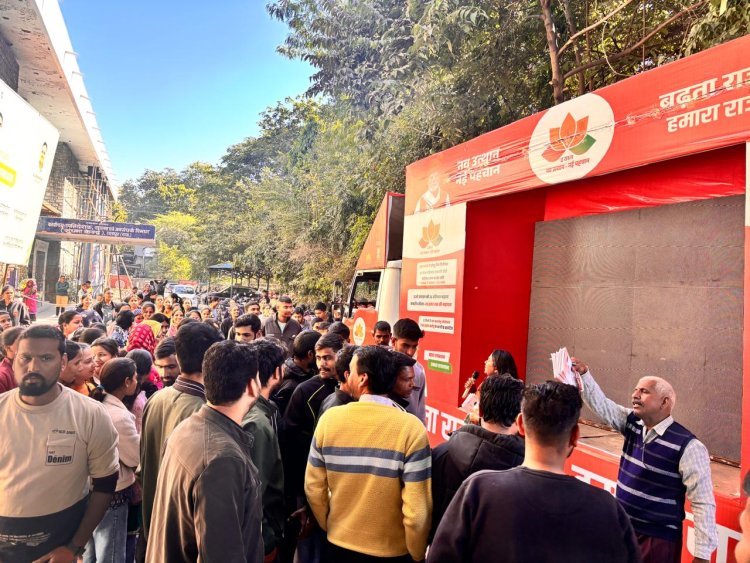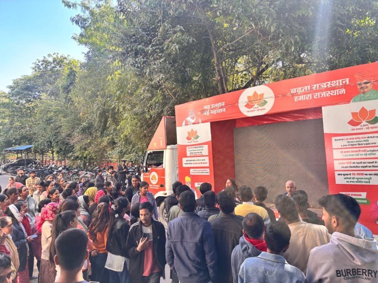 विकास रथ शुक्रवार सुबह उदयपुर शहर विधानसभा क्षेत्र के सूचना केंद्र परिसर भी पहुंचा, जहां बड़ी संख्या में युवाओं ने सहभागिता की। एलईडी स्क्रीन के माध्यम से युवाओं को राज्य सरकार की योजनाओं, उपलब्धियों और रोजगार से जुड़ी जानकारियां दी गईं।