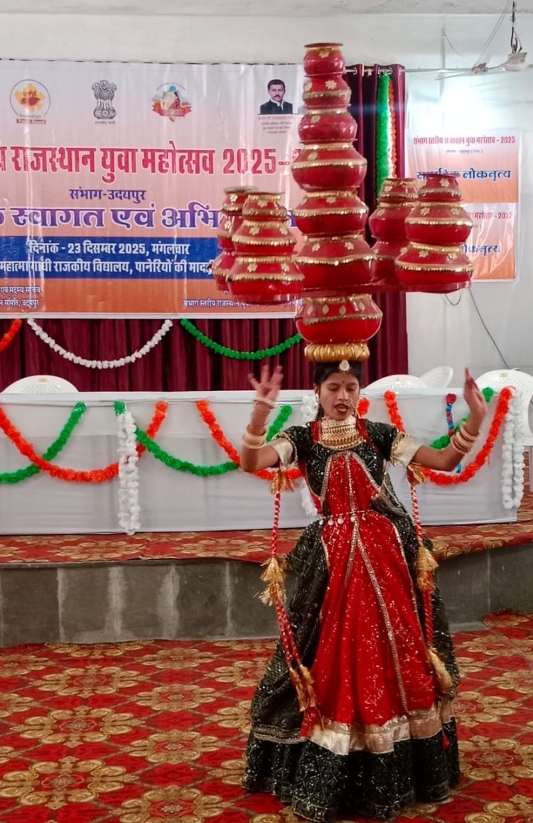 उदयपुर में आयोजित संभाग स्तरीय युवा महोत्सव 2025-26 में बाल व युवा कलाकारों ने राजस्थान की दुर्लभ लोक कलाओं का शानदार प्रदर्शन किया। प्रथम स्थान प्राप्त कलाकार राज्य स्तर पर जयपुर में भाग लेंगे।